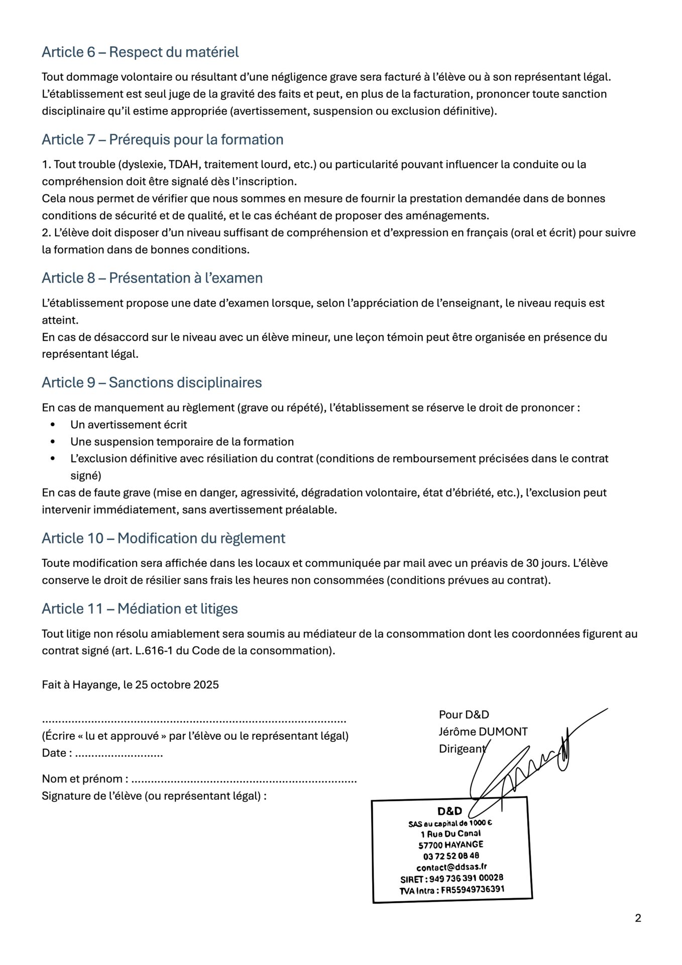 En signant votre contrat chez DRIVE FOR IT, vous acceptez les conditions de notre règlement intérieur. Ces règles permettent de se protéger mutuellement et de s’assurer, chez vous comme chez nous, que votre formation se déroulera dans les meilleures conditions.